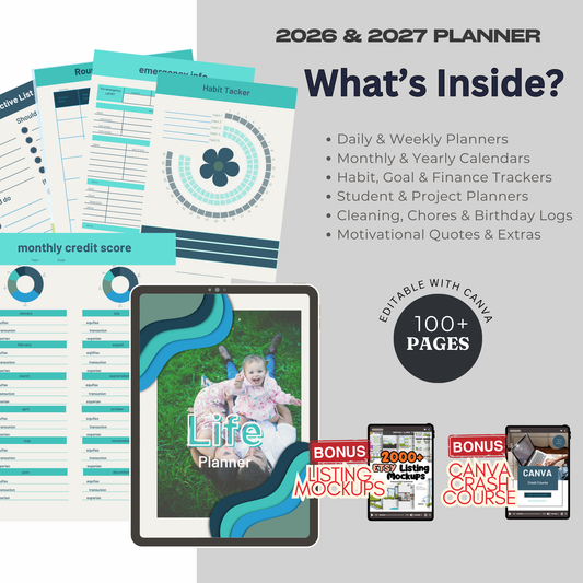2025–2027 Digital Planner | 100+ Page Canva Template | PLR & MRR Resell Rights | ADHD Life Planner Adult | Printable Organizer Bundle