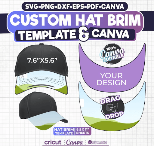 Hat Brim Template SVG | Trucker Hat Template Bundle | Baseball Cap Brim | Canva Hat Template | Cricut Hat SVG | Editable Hat Design