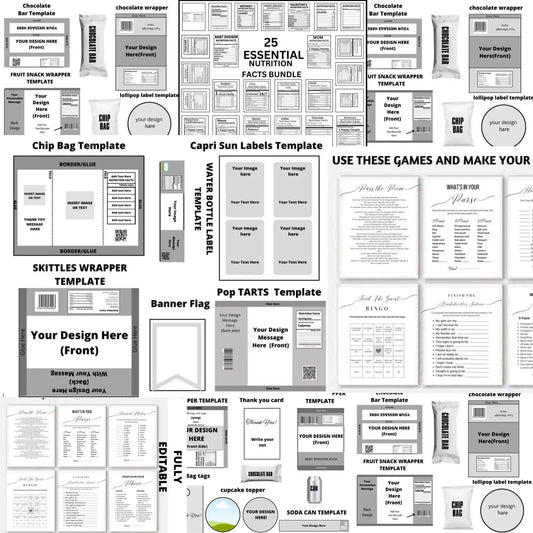 400+ Party Favor Template Bundle: Chip Bag, Candy Wrapper (Digital Download)