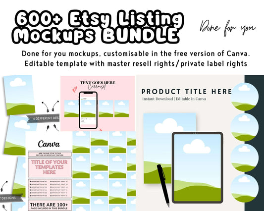 600+ Listing Canva Mockup Templates | Digital Product Listing Mockups | Editable Canva Templates | Etsy Thumbnails & Bonus Canva Guide