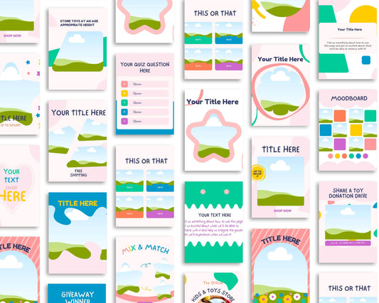 26 Kids Shop Canva Templates | Colorful Social Media Templates | Mom Business | Children Brands | Editable Canva Posts | Canva Guide Bonus