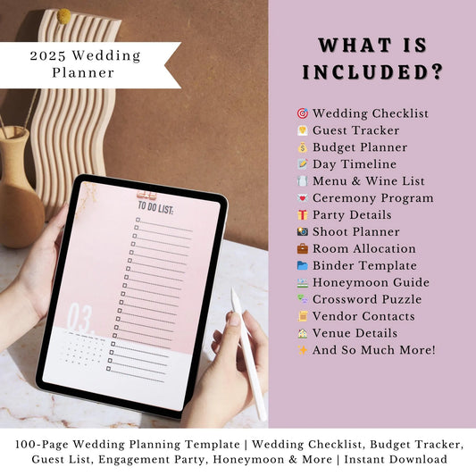 2025 Wedding Planner Template | 79 Pages of Checklists, Budget Tracker, Guest List & More | Instant Download for Brides and Grooms