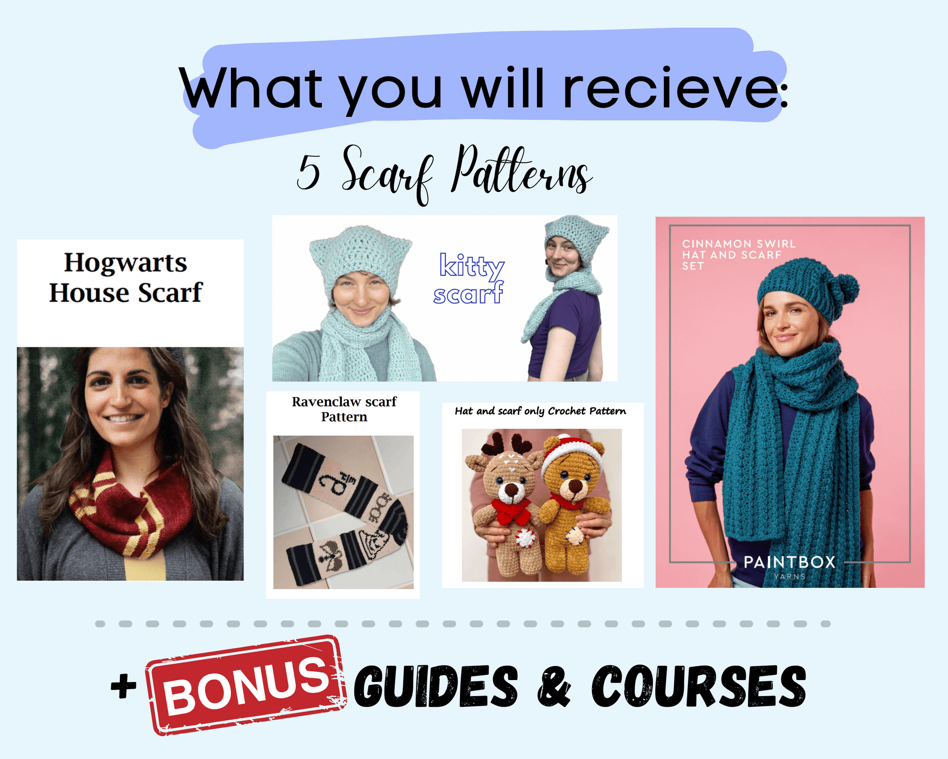 ✨ Create your next cozy masterpiece with this 5 Crochet Scarf Pattern Bundle — perfect for beginners and experienced crocheters alike! Each pattern is designed for warmth, comfort, and creativity — ideal for making holiday gifts, festive outfits, and stylish winter accessories.
