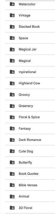 This bundle includes a wide range of themes and styles, including: Watercolor, Vintage, Stacked Book, Space, Magical Jar, Magical, Inspirational, Highland Cow, Groovy, Greenery, Floral & Spice, Fantasy, Dark Romance, Cute Dog, Butterfly, Book Quotes, Bible Verses, Animal, 3D Floral, and many more!
